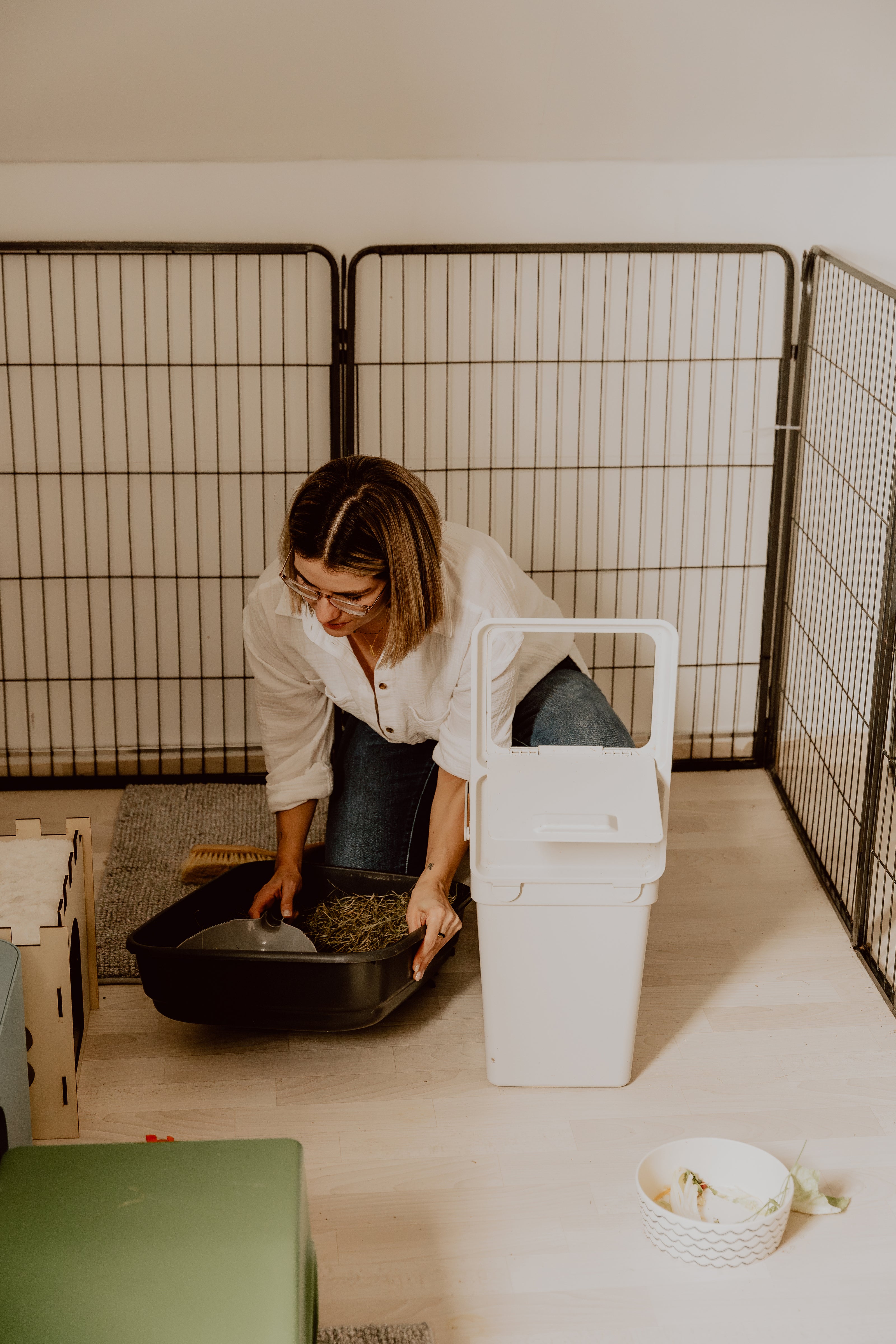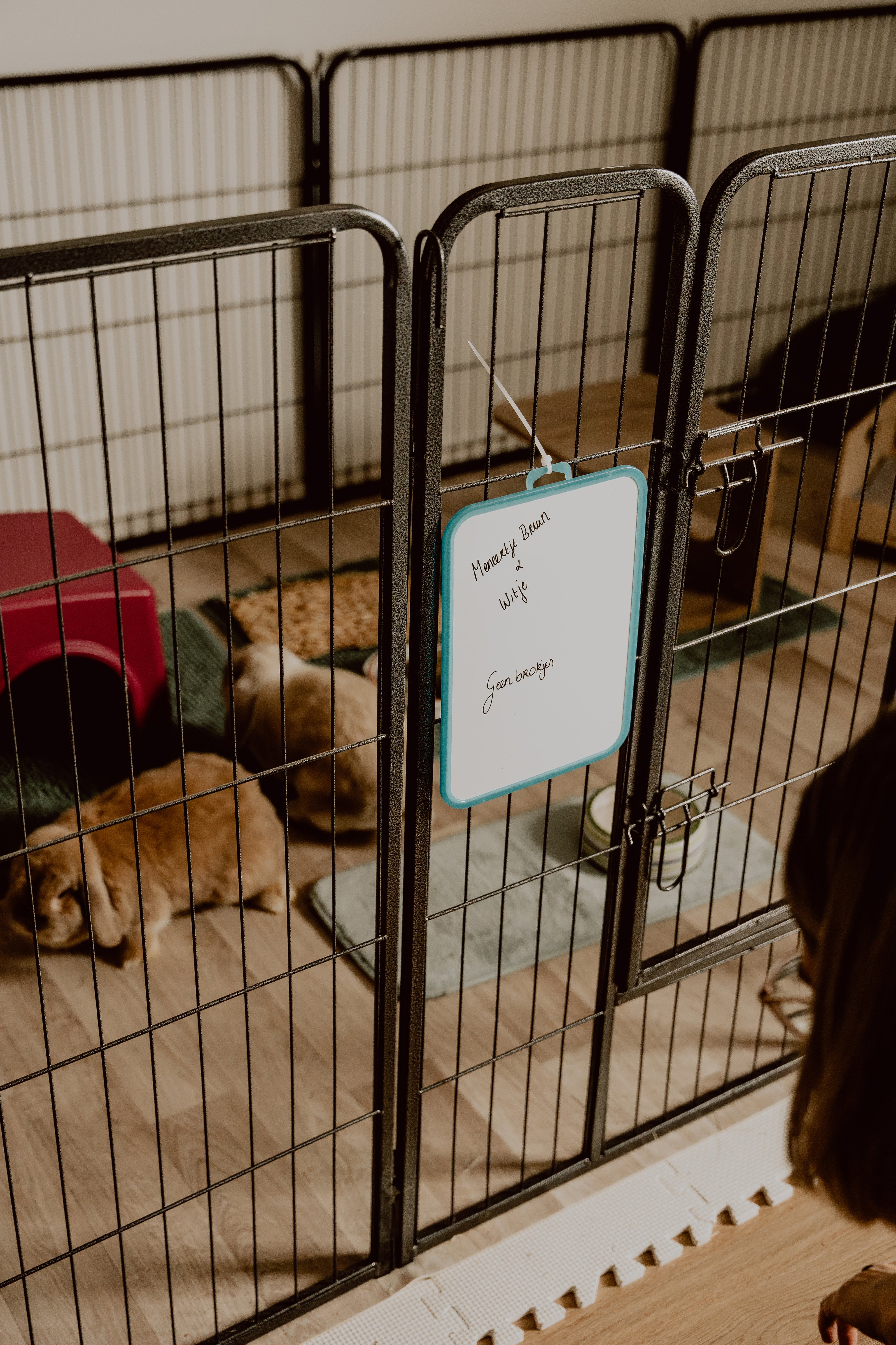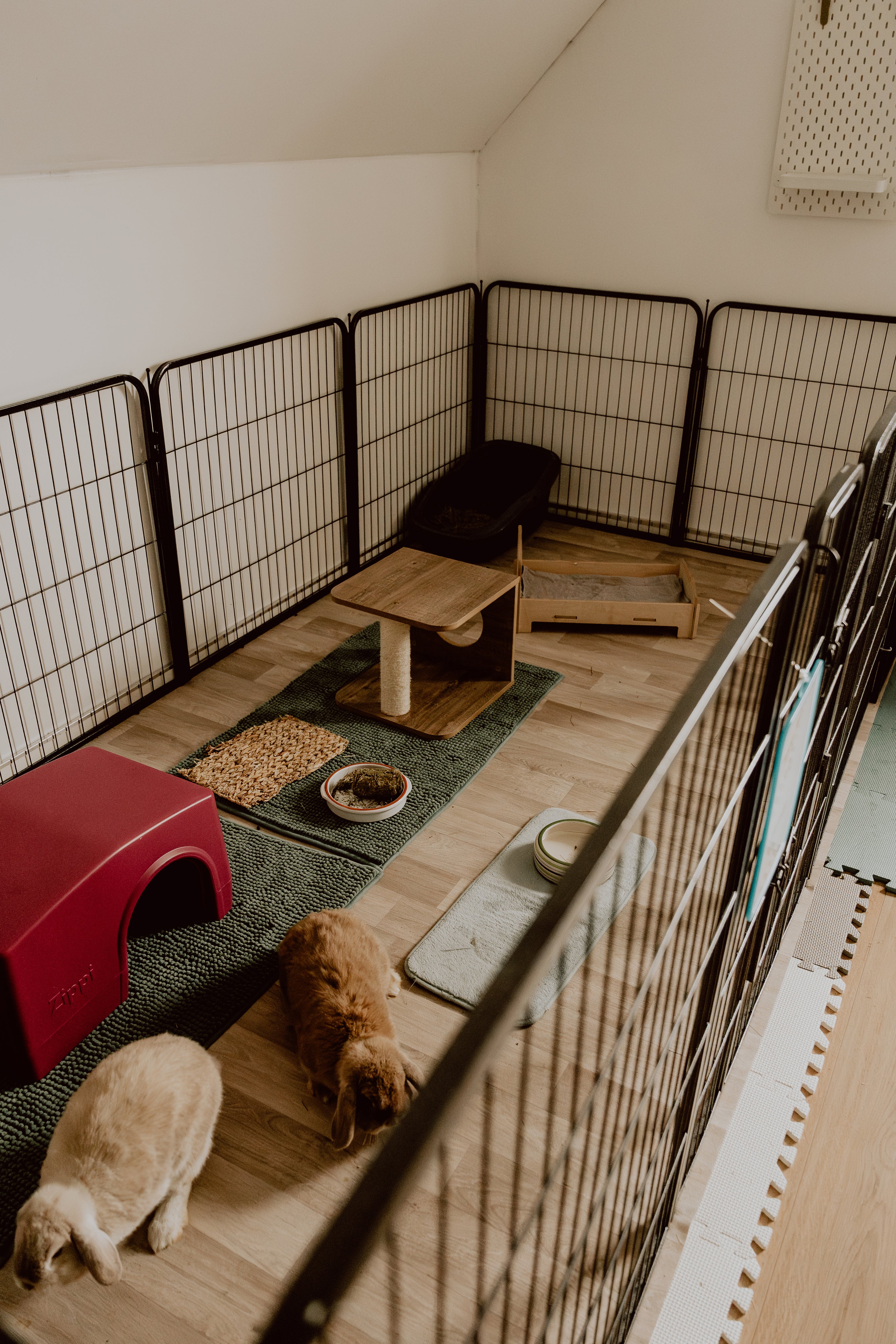 Alles is dus voorzien maar ik raad wel aan om een huisje of dekentjes met eigen geur mee te nemen. Dan zullen ze zich sneller op hun gemak voelen in het konijnenhotel.
