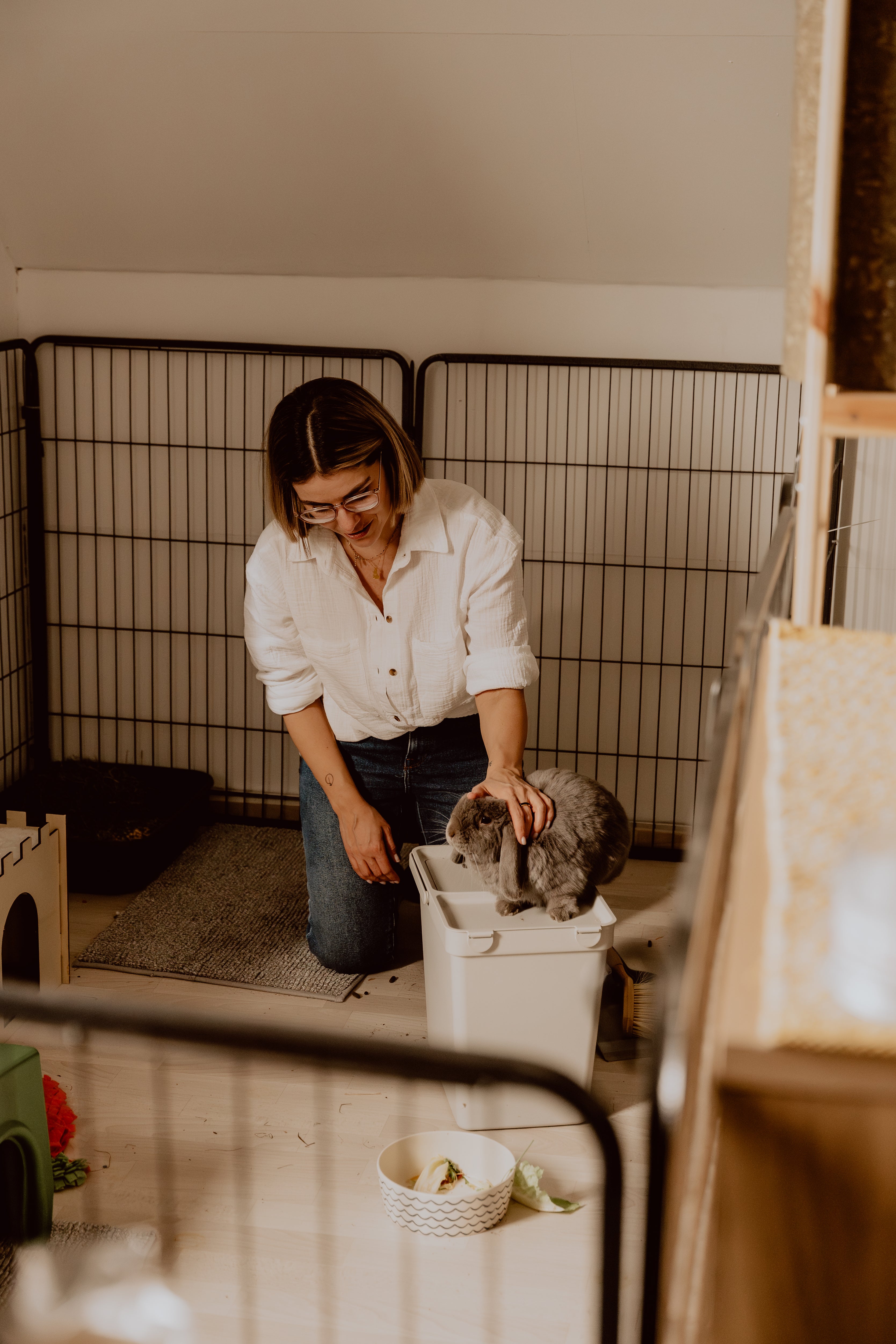 Sinds 2019 ben ik gediplomeerd konijnentrimmer en konijndeskundige. Ik ben dan ook meteen Flopping Lops opgestart. Mijn ervaring als dierenartsassistente geeft mij de opportuniteit om tijdens het trimmen en in het hotel snel in te grijpen bij een medisch probleem. Ik ben een echte huismus die liefst van al een hele dag met haar neus in de boeken zit, handen in de moestuin of bij onze konijntjes.