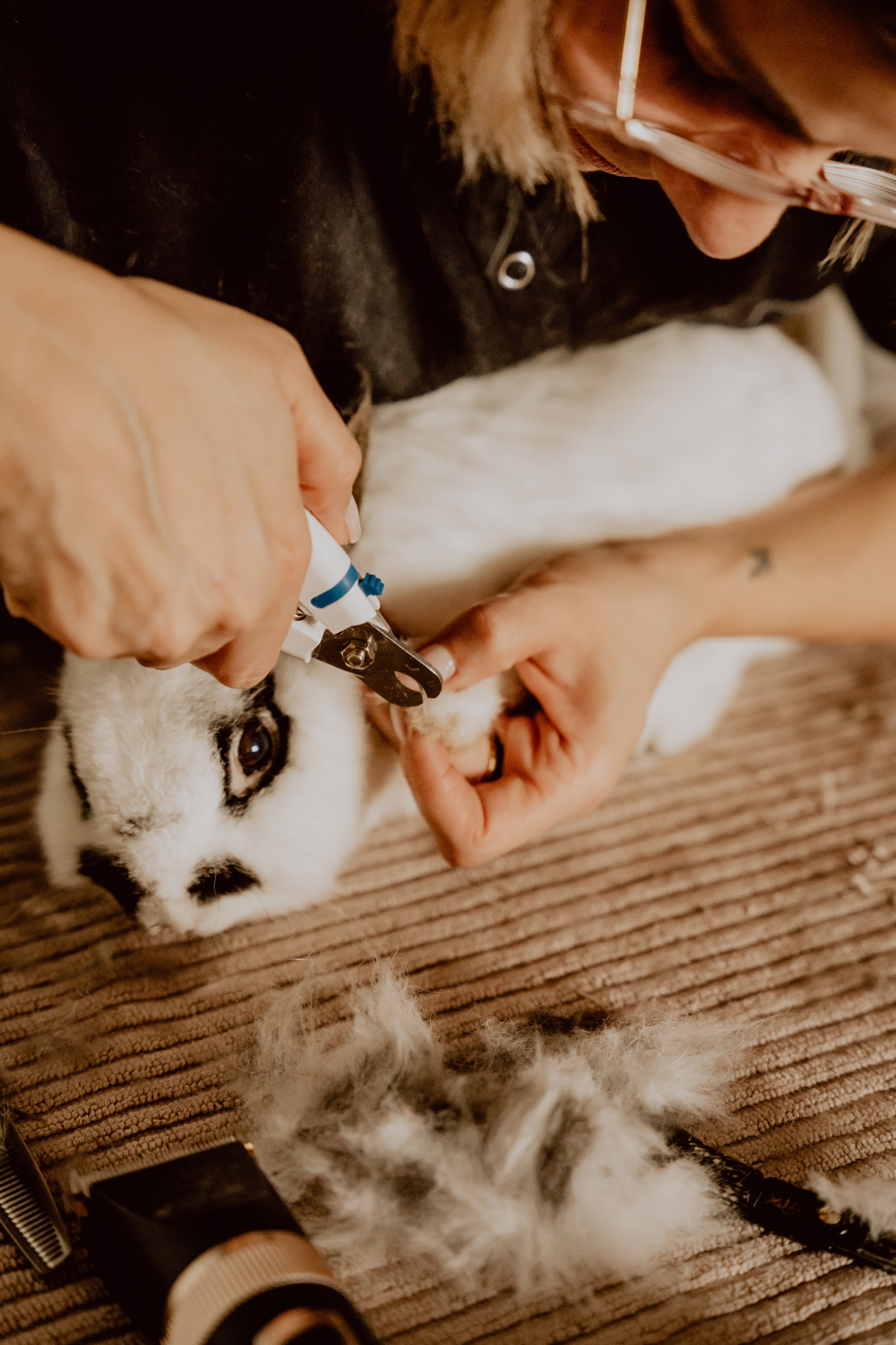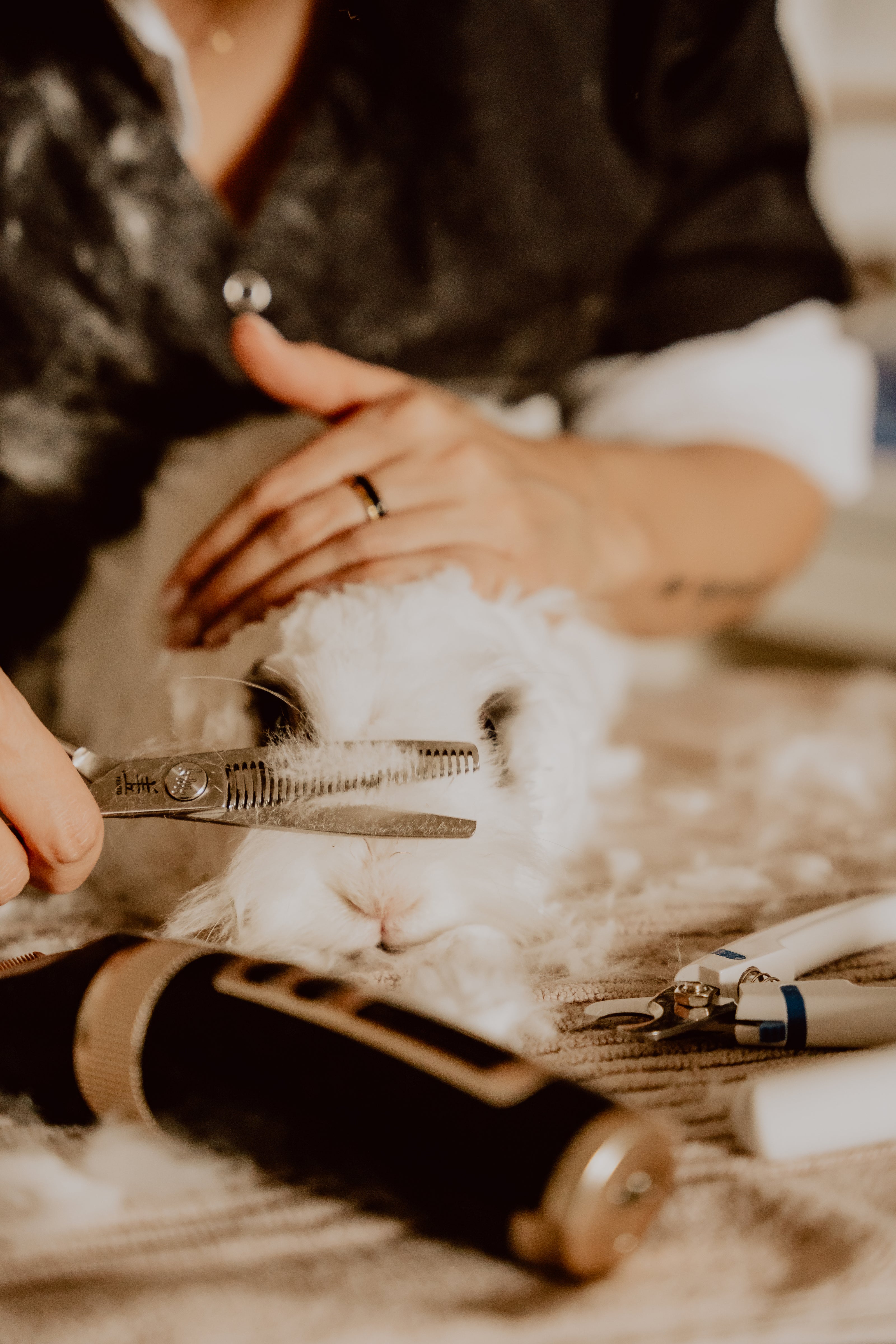 Een konijn wordt functioneel getrimd. Dat wil zeggen dat trimmen gebeurd voor het welzijn en voor de looks. Ik werk het konijn zo mooi mogelijk af maar verwacht geen geknipt bolletje.