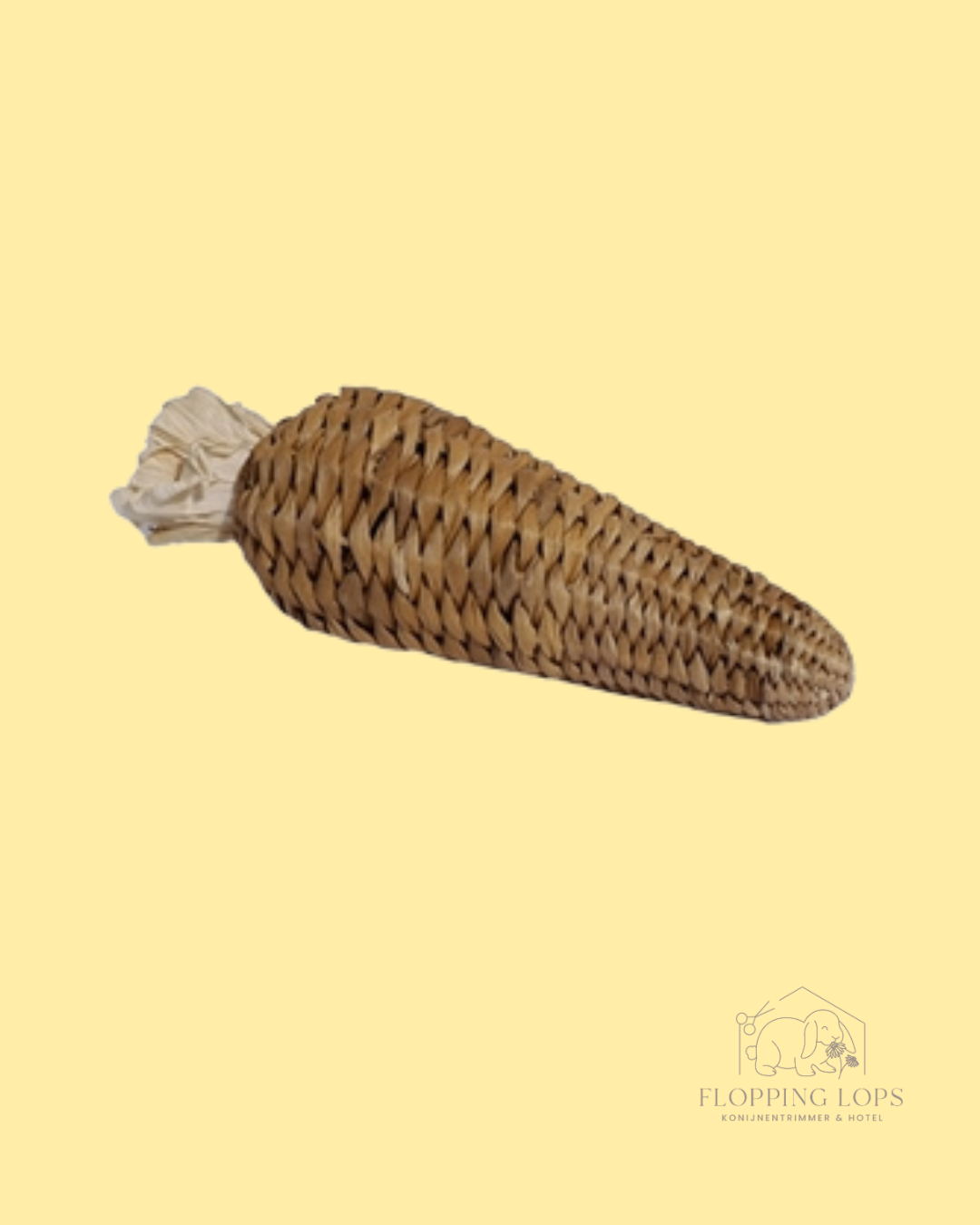 Deze natuurlijke speelwortel van geweven bananenblad is een veelzijdige verrijking voor konijnen. De wortel is gevuld met maisblad, wat extra interesse en interactie uitlokt. Konijnen kunnen knagen, trekken en de vulling er zelf uithalen. Dan kan je de wortel eenvoudig opnieuw vullen met hooi, gedroogde kruiden of een kleine traktatie. Zo blijft het speeltje telkens opnieuw uitdagend.